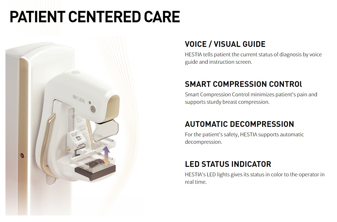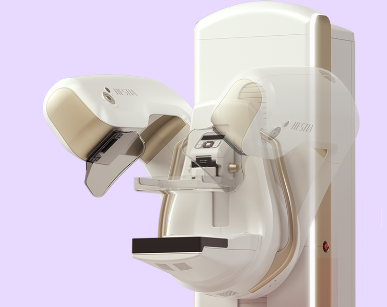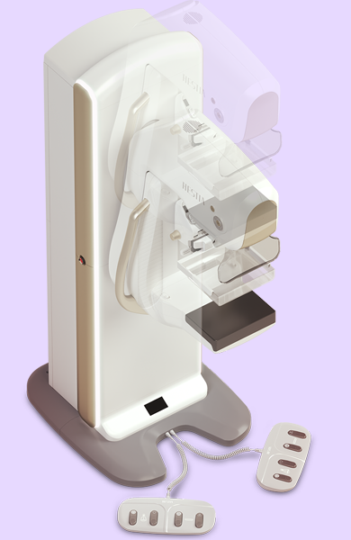 The X-ray tube moves on the breast and takes high-definition, high-resolution images with high contrast from various angles.